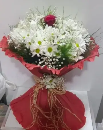 beyaz papatya tek kırmızı gül